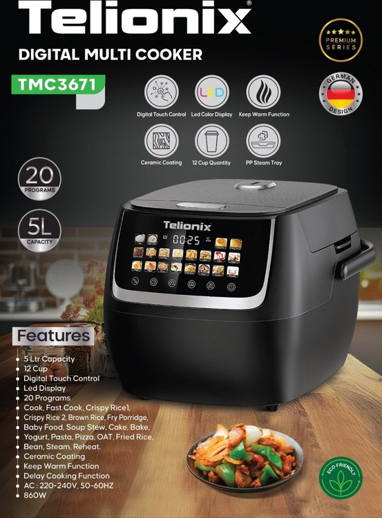 سایرمشخصات : 20 برنامه پخت، پخت سریع، برنجک ترد، برنجک ترد 2، برنج قهوهای، فرنی سرخشده، غذای کودک، خورش سوپ، کیک، پخت در فر، ماست، پاستا، پیتزا، جو دوسر، برنج سرخشده، لوبیا، بخارپز، گرم کردن مجدد _ پوشش سرامیکی _ عملکرد گرم نگهداشتن _ عملکرد پخت با تأخیر