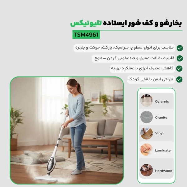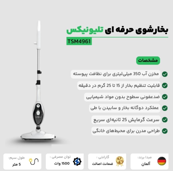 بخارشو و کف شور ایستاده تلیونیکس مدل TSM4961